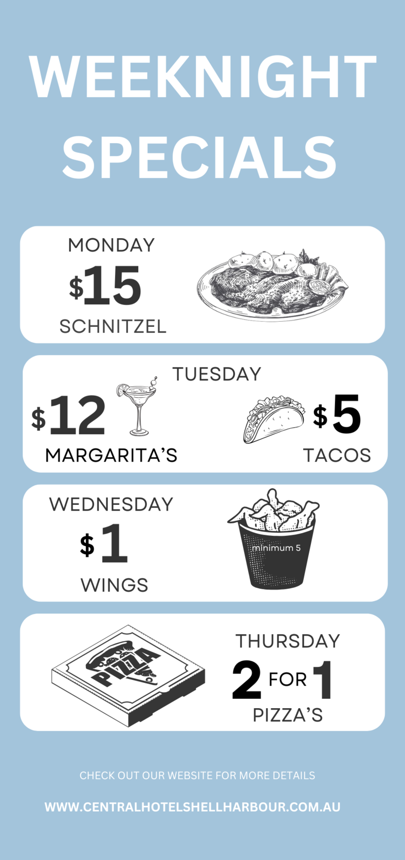 For function enquiries: functions@centralhotelshellharbour.com.au